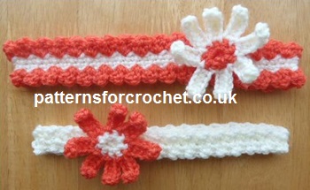 Finishing - Attach flower motif over slip stitched join on headband, sew in and tie