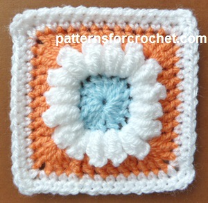 Starting with 1ch, 1dc into base of 1ch, work 1dc into each dc around four sides of square, working (1dc, 2ch, 1dc) into corners. Fasten off.